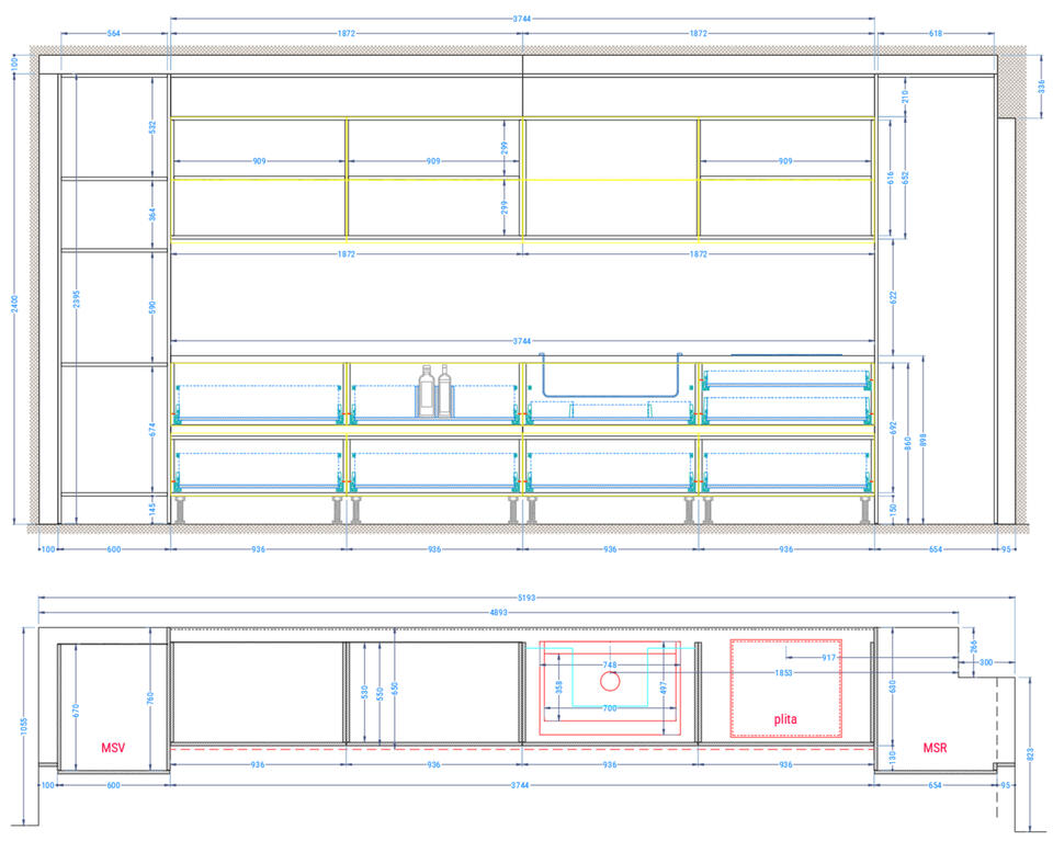 1. Clientul ne poate trimite măsurători sau planul locației precum și poziționarea estimativă a mobilierului în spațiul respectiv.