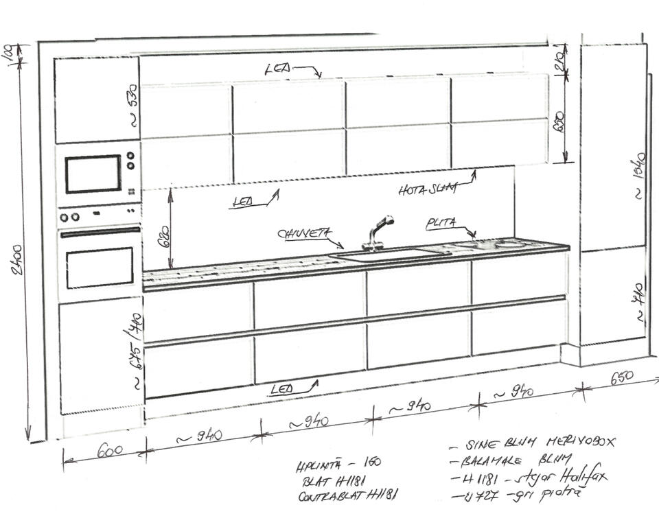 1. Clientul ne poate trimite măsurători sau planul locației precum și poziționarea estimativă a mobilierului în spațiul respectiv.